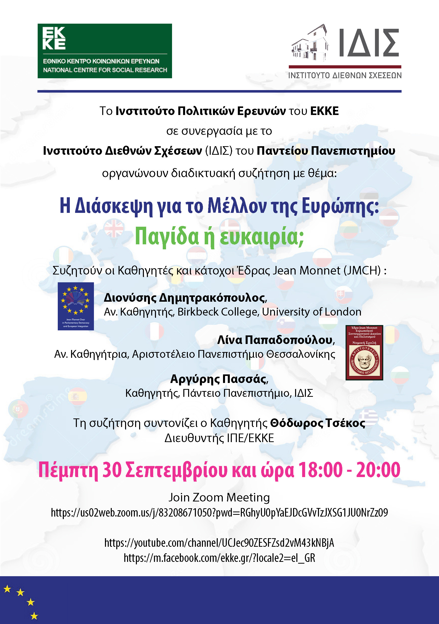 Διαδικτυακή συζήτηση του ΙΠΕ του ΕΚΚΕ και του ΙΔΙΣ του Παντείου Πανεπιστημίου με θέμα: Η Διάσκεψη για το Μέλλον της Ευρώπης: Παγίδα ή ευκαιρία;