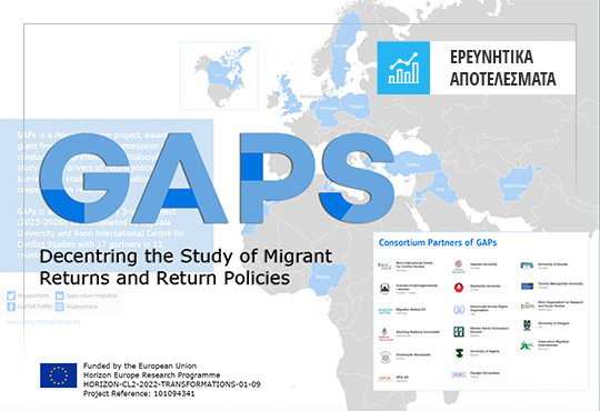Το ευρωπαϊκό ερευνητικό πρόγραμμα GAPs ‘De-centring the Study of Migrant Returns and Readmission Policies in Europe and Beyond’ πραγματοποιεί μια πολύπλευρη μελέτη της μετανάστευσης επιστροφής (return migration), εξετάζοντας τις σχετικές πολιτικές, την καθημερινή εφαρμογή τους και τις εμπειρίες των μεταναστών/τριών.
