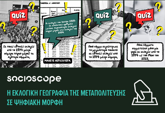 ΔΕΛΤΙΟ ΤΥΠΟΥ: Η ΕΚΛΟΓΙΚΗ ΓΕΩΓΡΑΦΙΑ ΤΗΣ ΜΕΤΑΠΟΛΙΤΕΥΣΗΣ ΣΕ ΨΗΦΙΑΚΗ ΜΟΡΦΗ. Για πρώτη φορά διαθέσιμα τα εκλογικά αποτελέσματα ολόκληρης της περιόδου 1974-2023 σε επίπεδο εκλογικής περιφέρειας σε ψηφιακή μορφή (γραφήματα και χάρτεσ) στην εφαρμογή socioscope.gr
